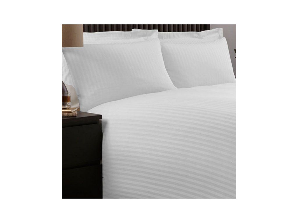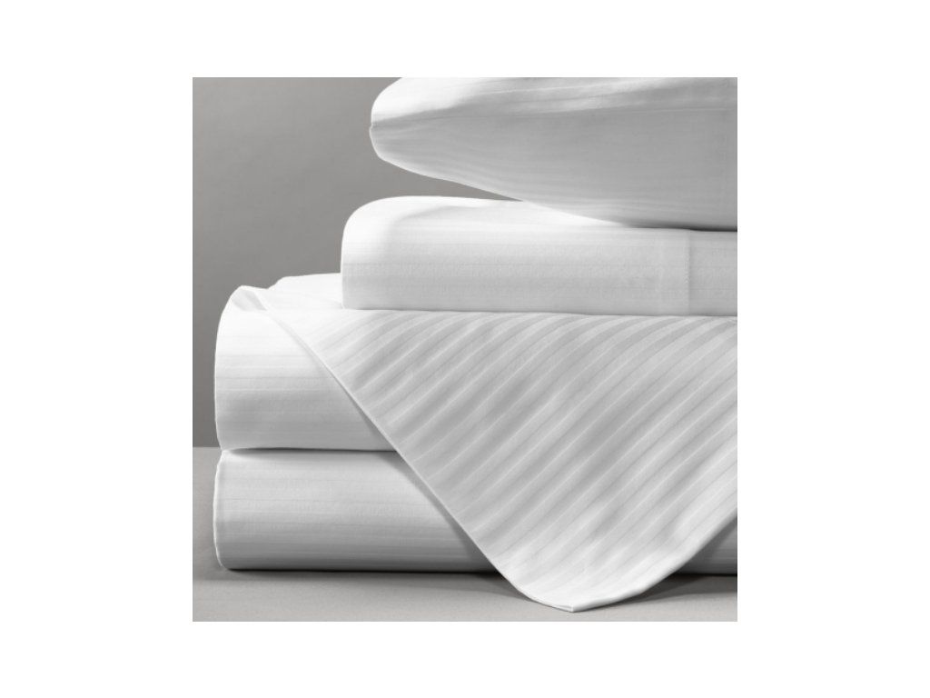 Klasická, robustní bavlněná saténová tkanina z mykané příze v provedení hotelové pruhy, tkanina má nadprůměrnou gramáž, která vytváří pro uživatele dojem hmotného (nebo objemného) ložního prádla, a to i v případě použiti lehčích sintaponových dek a PES polštářů. |