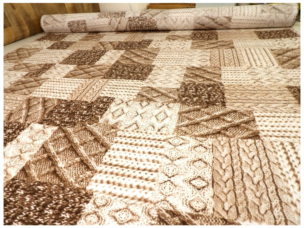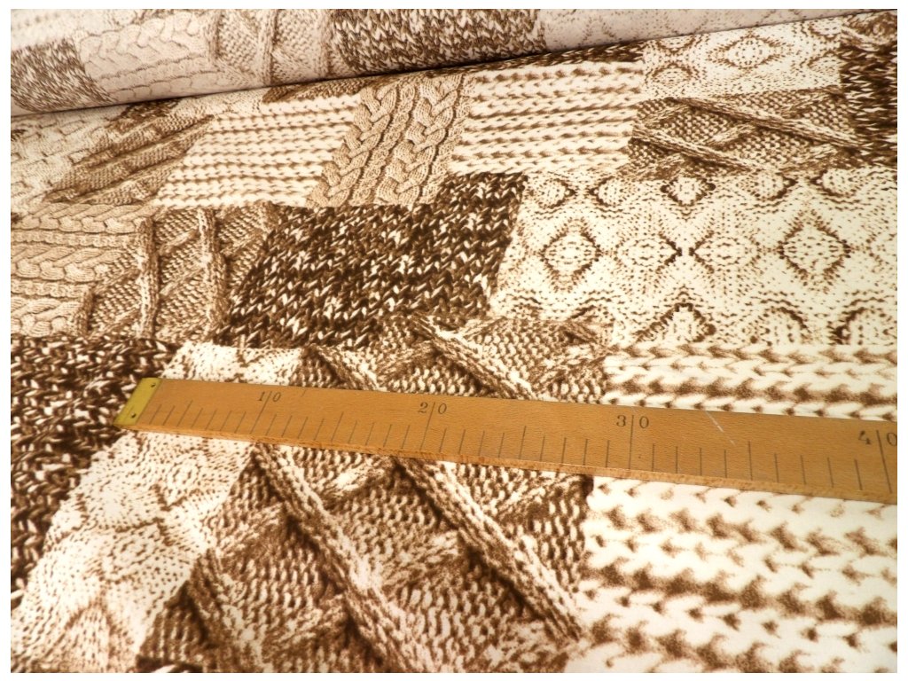 DOMESTINO 120/ 22308-2 Pletení - béžový 3D tisk /ZBYTKOVÁ METRÁŽ